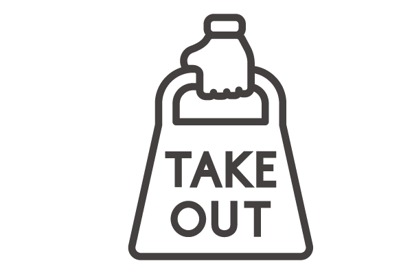 テイクアウト限定のハンバーガーやとり天丼。その他ランチメニューからのテイクアウトもあります。